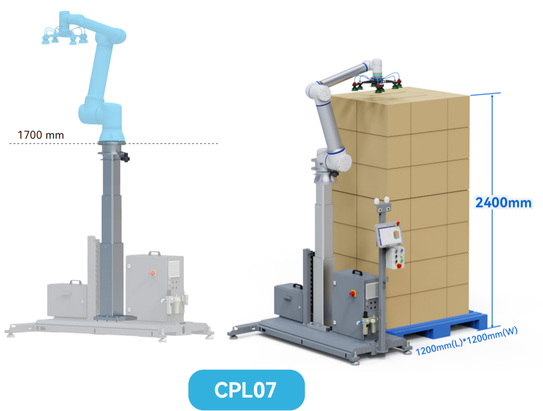 Роботизированная ячейка для (де)паллетирования ELITE ROBOTS CP CPL07, телескопическая колонна