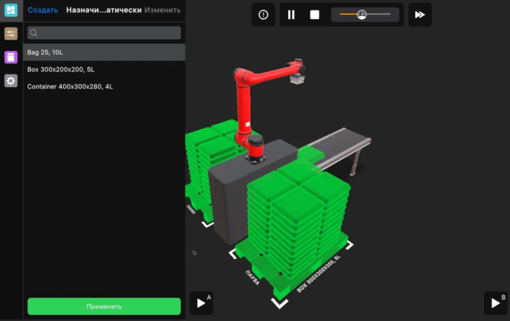 Специализированное ПО, не требующее от оператора навыков программирования. Быстрое создание и редактирование схем укладки в визуальном редакторе. Встроенные алгоритмы предотвращают некорректные действия оператора и минимизируют риск сбоя. Функция быстрого восстановления обеспечивает возобновление работы в кратчайший срок.