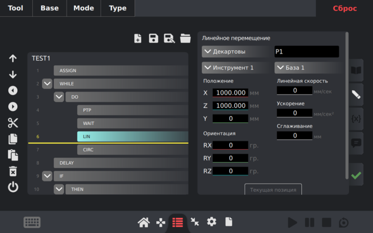 Позволяет создавать управляющие программы для робота без навыков программирования. - Поддержка различных типов движений: