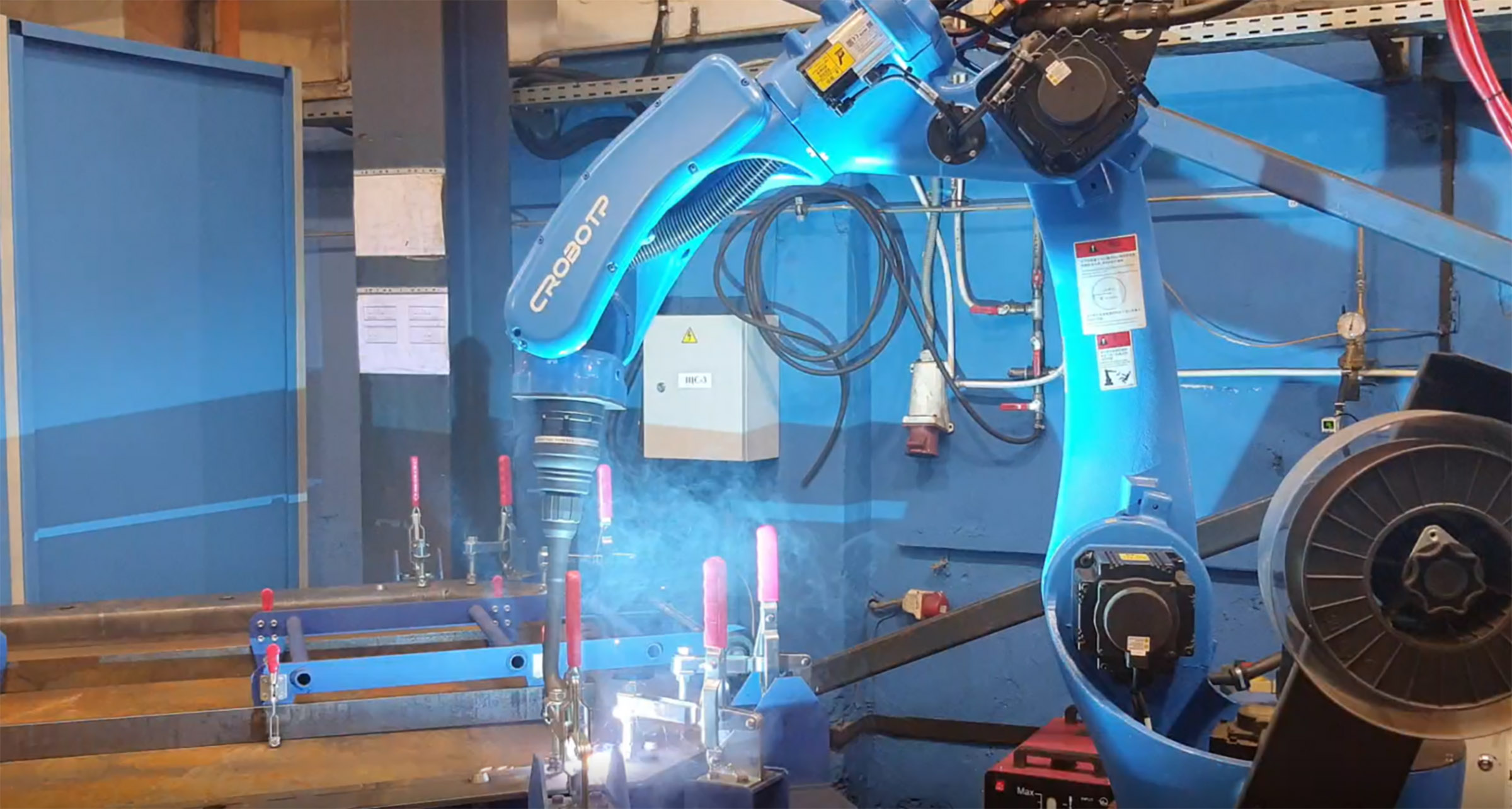 Для решения задачи поставлены два робототехнических комплекса на базе промышленных сварочных роботов CRP RH14-10-W. В состав каждого комплекса вошли: